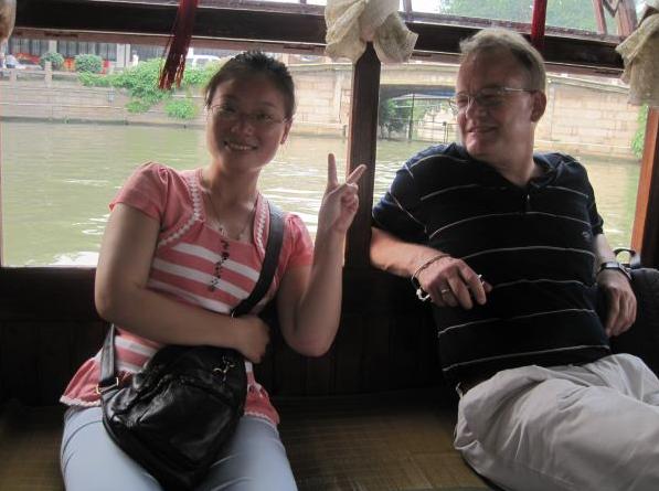 For that he used some important principles of Chinese gardening. These were later very good explained in the Suzhou Garden Museum which is part of Humble Administrator’s Garden. Unfortunately the first rooms and pictures are very old, so we would not have entered them without Nancy. But after passing the Exit after three buildings you enter the new part of it which is very modern and nicely made. I strongly recommend going there as it helps you understanding how Chinese gardening architecture works, as it differs a lot from French gardens as we have them in Europe. As it is usually not included in Day-Trips you might ask your tour guide to lead you to this place. When we wanted to enter the Suzhou Museum, the entrance was denied to me because I was wearing Flip Flops. Since the beginning of June they have a “law” which does not allow visitors to enter with open shoes made out of plastic like Flip Flops – Crocs are allowed by the way. So do not forget to wear suitable shoes for this excursion if you do not want to buy shoes at the shop next door of the museum. Then we went by car to the “Silk Factory No. 1”. First we got lunch there, at a place where many tourists are brought to. As I am in the tourism business I usually dislike these places because they do not show people what “real China” is and tastes like. But I have to admit that the food was quite good. Then we attended a show where some mannequins presented clothes made out of silk and finally were introduced into the production of silk in the factory. The guide showed us how the silk was made out of the cocoons of silkworms. From out of one cocoon you can get approximately 1km of thin but resistant string. Afterwards we did a cruise on an old boat on a canal.