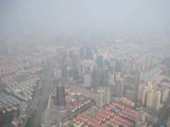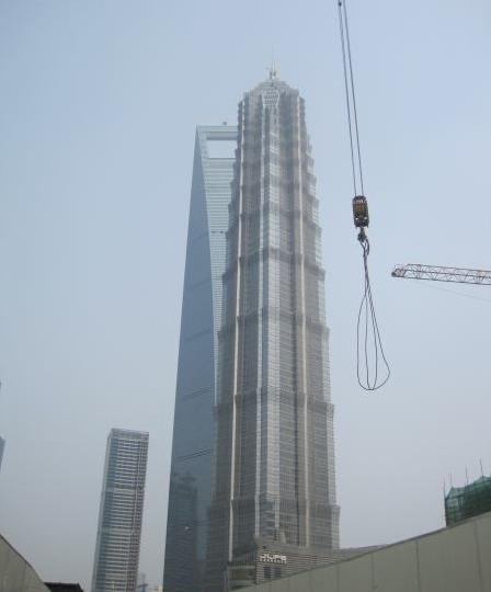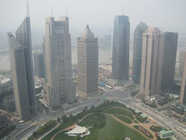 and then walked to JinMao Tower. On our way we passed several enormous building lots; due to the Expo 2010 which is going to be in Shanghai, they are (re-)building even more than they usually do. We took the elevator to the 54 storey, the first storey of the Grand Hyatt, which is in the tower.