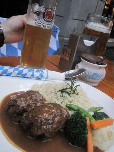 So we also could enjoy both skylines from the water during the sundown, which was very beautiful. We took a taxi to XinTianDi again, to have a typical German dish and another Weissbier at the Paulaner Beer garden.