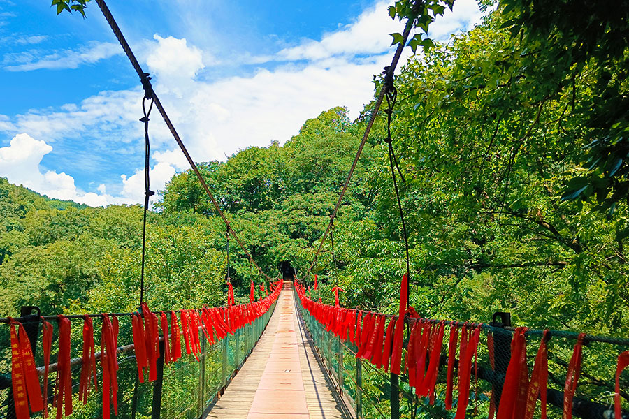 Made of wood and metal, this suspension bridge has a length of about 200 meters and is 62 meters height above the earth. It is absolutely exciting for you to pass over it, which swags slightly when people are walking on it. It is the right way to move on the middle of the bridge and not to run or jump on it so that the bridge will not rock. It may sound a little dangerous but in fact safe, as this bridge is stable and there are security guards directing tourists and keeping the order. And another exciting thing that people could experience inside the spot is the 180 meter-length fleeting cable sliding, which is a quick and easy way to get down to the foot of the mountain and get close to the nature.