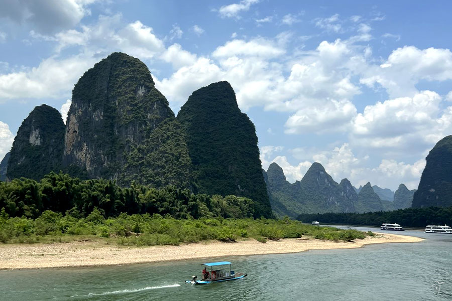 large and seven small), and hydrological station and the oldest boat on the Li River;