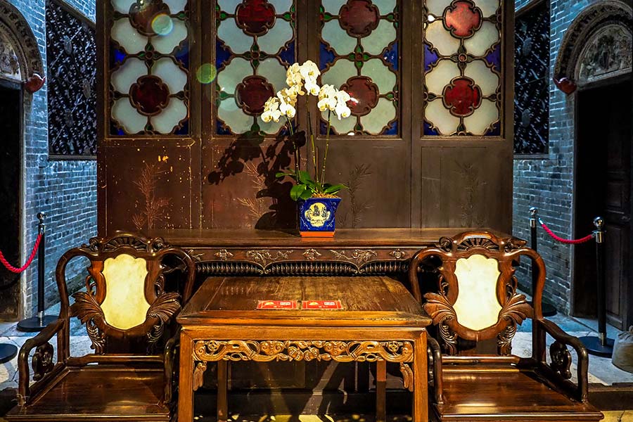 The Lou Kau Mansion (Casa de Lou Kau) located on the Travessa da Sé is the residence of Lou Kau (1848-1907), a famous Macau merchant in early 20th century. Lou Kau Mansion has been listed as a part of Historic Center of Macau. Governed by Macau Bureau of Culture, it is opened to the public partially. The Cantonese-style mansion was built in 1885. It is two-storey tall with gray brick walls, being a rare extant traditional mansion in Macau. The layout imitates Xiguan Dawu (most of them are residences of merchants and officials built in late Qing Dynasty) in Liwan District of Guangzhou City. The hallway, tea room and the main hall are separated by screens. Several patios are arranged to collect light. The interior decorations bring in both Chinese and western elements. Brick carvings, plaster moldings, hanging fascia are akin to those found in central Guangdong Province. While false ceilings, iron railings, and Portuguese-style blind windows with stained glasses add to the western elements of the complex. In 1992, Lou Kau Mansion became a protected architecture as the Macau government appraising it "with great architectural artistic value".