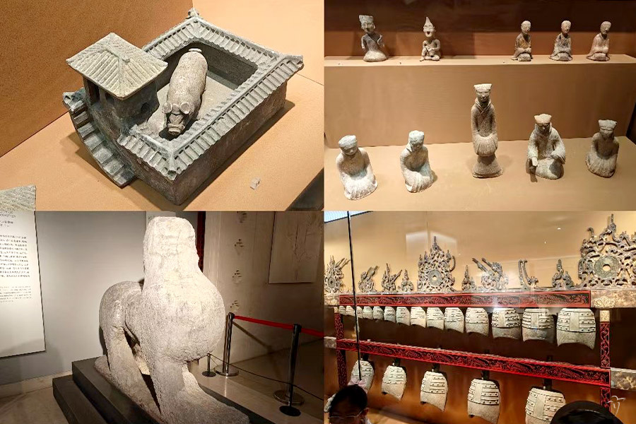 This exhibition can be divided into several sections according to the different functions such as clothes, household goods, tools, entertainment goods, sacrificial vessels, and so on. The exhibitions like clay figurine and paper-cut show a vivid scene of people's daily life in the areas south of the Yangtze River.