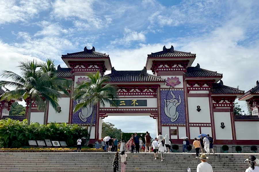 Recommended visiting route: The Dharma-Door of Nonduality – Gold and Jade Satue of Avalokitesvara – Sandi Bridge – Longevity Valley – Leisure Center – Sculptures of Elephants – Yuanqilou Building – Jixiang Ruyi Garden – Nanshan Temple –Wenbao Courtyard of Nanshan – tree houses – Samadhi – Avalokitesvara of South Sea – The Dharma-Door of Nonduality.