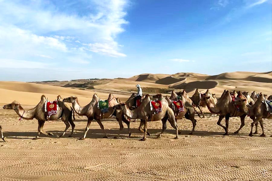 Today we are going to experience a natural phenomenon by visiting the Resonant Sand Bay in Erdos, which is 45km from Baotou and emits a sound like the purring of a car or an aircraft engine whenever someone is sliding down the top of its 90-metre-high slope with a 45-degree gradient. Visitors may also go horseback or camelback riding or enjoy local folk singing and dancing.