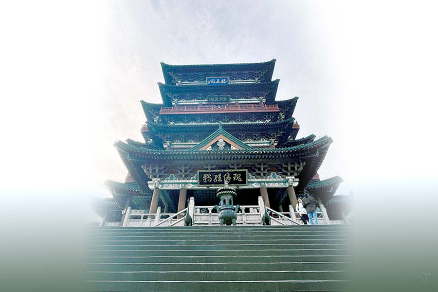 Then we will see the Xunyang Pavilion, also named Xunyang Lou, it is located near the Xunyang River northeast of Jiujiang. It is a simple and graceful ancient pavilion with carved beam and painted rafter.
