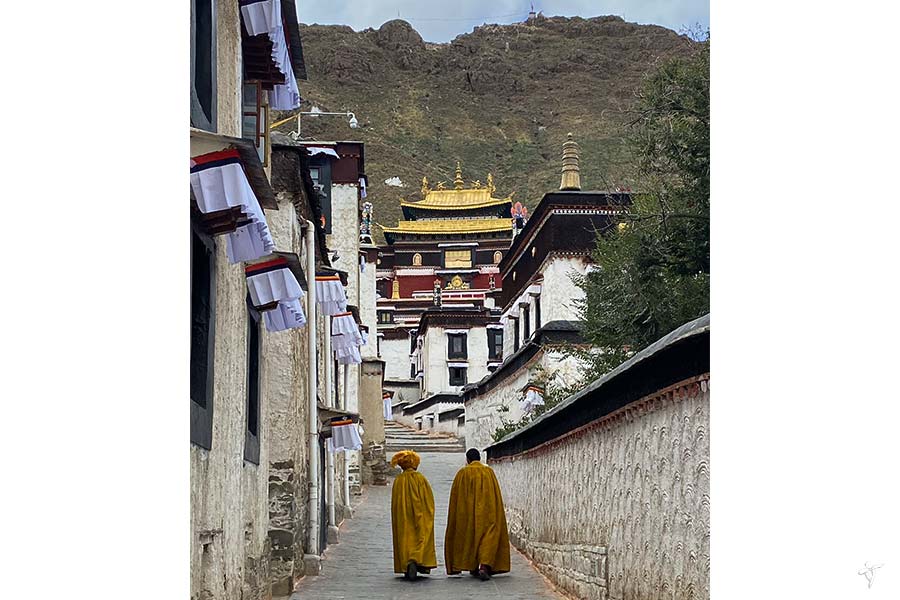 The first impression of the monastery to visitors is always its grand brown buildings with golden roofs and white walls. The main buildings inside should be the Maitreya Chapel, the Panchen Lama's Palace and the Kelsang Temple. The remarkable Thangka Wall in the right front was built by the first Dalai lama in 1468 and displays the humongous Buddhist Tangkas, the unique Tibetan paintings during the key Tibetan festivals. Most of them are images of Buddha.