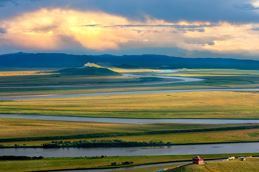 Activities around The First Bend of Yellow River are abundant. You can enjoy the scenery of meadows and have an unimpeded view as the river snakes off toward the horizon; you can also ride a horse to gallop on the grassland, or fish by the Yellow River and then have a picnic, or visit the temples nearby for worship...However, watching sunset is an activity you cannot miss when visit The First Bend of Yellow River. As evening approached, the sun gradually turns red and the whole river valley is covered with a blanket of golden yellow, you will find the wonderful land and vast sky seem to melt into each other. To visit The First Bend of Yellow River in summer, you can particularly see the magnificent scenery there.