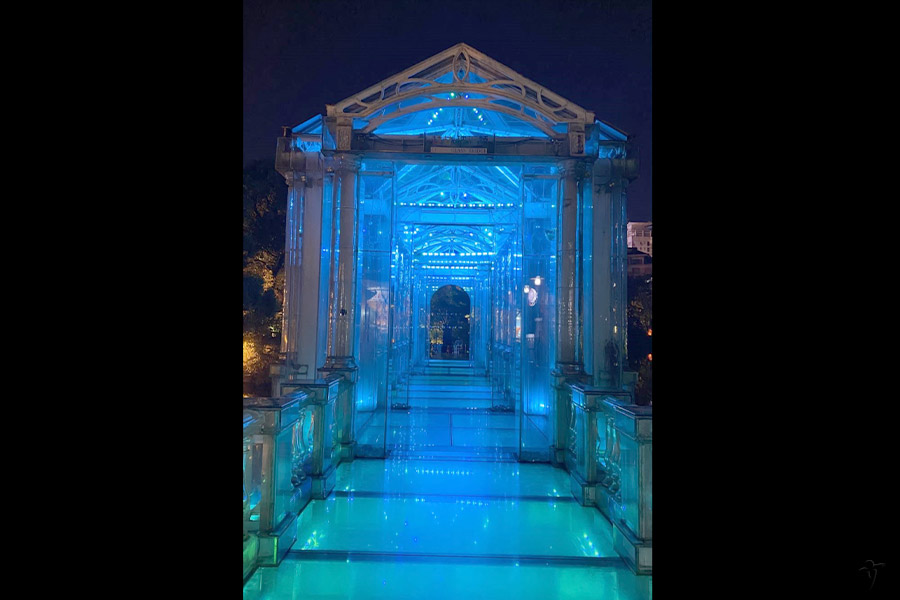 Located in the Banyan Lake, it is the first bridge that has been made of crystal glass in China. Elegant and transparent, the bridge is glittering at night when colourful light spreads.