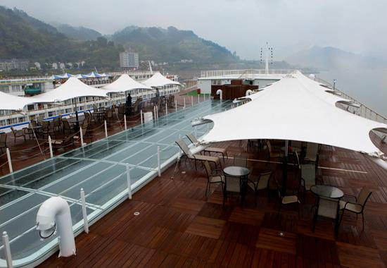 Yangtze Gold Cruises is the newest and best cruise line sailing the Yangtze River. Featuring the most luxurious and technologically advanced river cruises in the world. Marvelously built with 21st century standards and technology. The ships have viewing decks over 40 thousand square feet, ocean wave simulating swimming pool, cigar bar, panoramic river viewing bar, fitness room, spa (both western and Chinese), and large cabins each with its own private balconies for viewing and tranquility.