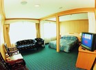 Active Window, TV, Mini Bar, Weight Balance, Life Jacket, Memo Pad, Tea Bags, Bath Foam, Bath Towel, Face Towel, Comb, Toothpaste, Tooth Mug, Toothbrush, Shoe Sponge, Telephone Directory, Mini Refrigerator, Hair Dryer, Cloth Line, Ball-Pen, Coffee Bags, Shampoo, Shower Cap, Bath Robe, Hand Towel, Soap, Slippers, Laundry Bag.