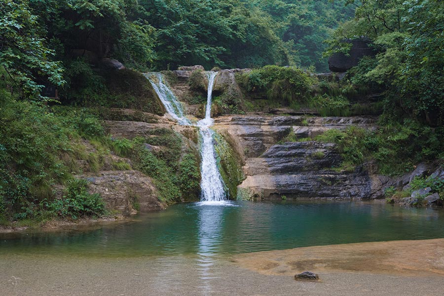 Deep pool waterfall is located a little north west of Yuntai Mount; it is the main source of water for Zifang Lake. The channel it runs is about 1270 meters long, the stream that runs here is called little dragon creek, it's bed rock is made up of different colored stones, different sized stones, wide, narrow ones, and unique natural rock steps. The sound that the creek makes, and the way it moves are compared to that of a beautiful voice singing, and a master dancer dancing. So come on down watch this eternal show, and walk away knowing you've seen something that's been going on for thousands of years, it should make you feel special.